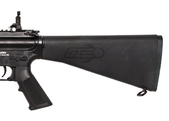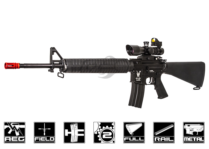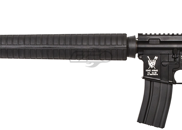 The King Arms M16A3 Ultra Grade Nylon Fiber Airsoft Gun is sure to grab the attention of the other players at your local field. The receiver of this AEG is full metal which provides a realistic weight and feeling compared to other airsoft gun models. The front of the gun features a nylon hand guard which measures around 12" in length paired with a 20" barrel which makes for a highly accurate and controllable rifle. The full stock on this AEG allows the AEG to hold a variety of batteries from large type to small type or even a Lipo battery. Internally, this AEG features a metal gearbox that is well tuned and is sure to last and perform quite well. If you are looking to get into airsoft of you are looking to expand your inventory with a great m16a3 then look no further.