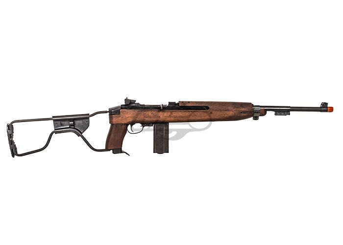 This King Arms M1A1 Paratrooper Real Wood CO2 GBBR Airsoft Gun is a high quality CO2 operated model replica of the real steel WW2 rifle. When holding this airsoft gun you can tell that the high quality real-wood stock makes a huge difference on the weight and feeling. The metal barrel is constructed with high durability preventing the item from being worn down over a quick period of time. King Arms did a great job with the function of the strong and crisp blow back action of the airsoft gun. Additionally, the airsoft gun comes with a sanding sponge for customizing your own Paratrooper Carbine into vintage style.