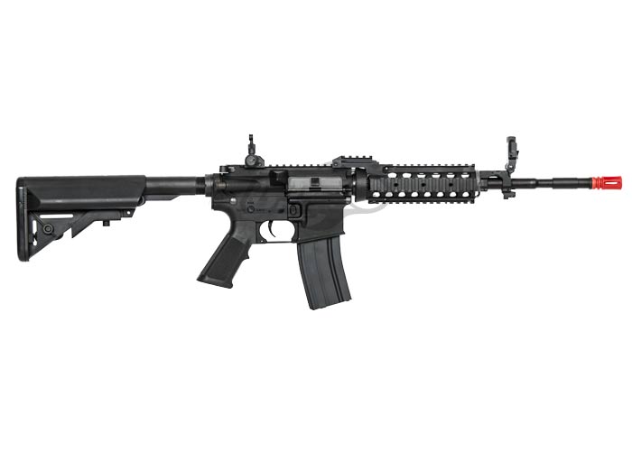 The King Arms Nylon M4 RAS II Field Pack AEG Airsoft Gun is the perfect choice for an beginner to intermediate level performance AEG. Both the RIS and the receivers are made of a durable rigid polymer, which helps cut down the weight as well as the cost of the gun. The included RIS system allows you to mount all sorts of tactical accessories to complete your mission. Aesthetically, the RAS II Rail System looks unique and has a segment that bridges the gap between the receiver rail & the handguard rail. Front and rear flip up sights allow you to use them in conjunction with a reflex sight. Internally, this M4 features high quality King Arms internals. Included with the gun are two high cap magazines, a battery, a charger, and flip up sights. This gives you everything needed in order to play a full day of airsoft. The Nylon M4 RAS II is one of easiest packages to get out and start playing, with everything you need in one convenient bundle.