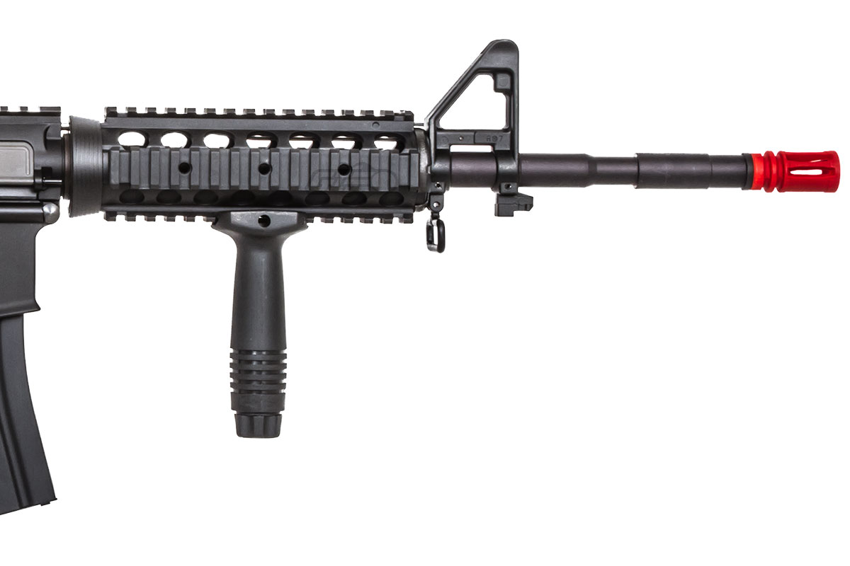 The King Arms Nylon SOPMOD AEG Airsoft Gun is the perfect choice for an intermediate level performance AEG. Both the RIS and the receivers are made of a durable rigid polymer, which helps cut down the weight as well as the cost of the gun. The included RIS system allows you to mount all sorts of tactical accessories to complete your mission. Internally, the Nylon M4 SOPMOD features high quality King Arms internals such as wire cut steel gears, reinforced piston, and a very durable gearbox. The quality of this rifle is perfect for those who want a lightweight SOPMOD style m4, great for beginners to intermediate players who are looking for another rifle to add to their collection.