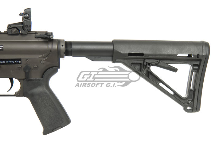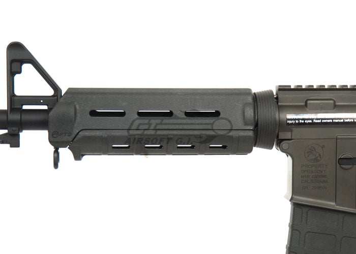 The King Arms Full Metal Smith & Wesson M&P / Magpul MOE Carbine was designed to show the performance and durability of King Arms products. Externally, the M&P MOE Carbine features an extremely high quality metal body with fully licensed M&P and Smith & Wesson trade marks. Internally, this gun features King Arms high quality full metal gearbox that is sure to impress even the most diehard player. The King Arms M&P MOE Carbine also features a functioning bolt catch that really adds to the realism of this AEG. This gun is finished off with the Magpul PTS MOE Hand Guard and PTS MOE Stock to increase durability and comfort. The MOE pistol grip, rear MBUS and Magpul P-Mag were added to decrease weight over the traditional M4 parts. Overall, this gun is built to withstand serious gameplay for a long period of time.