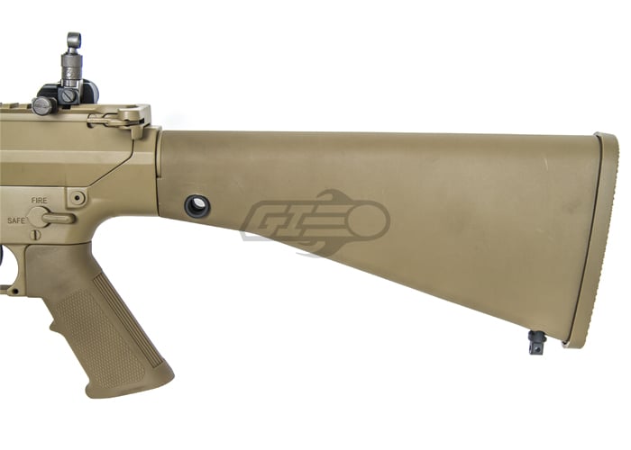 The SR-25 and M110 are based loosely on the original AR-10 developed by Eugene Stoner, but feature additional refinements instituted by KAC to maximize parts compatibility with the AR-15 design, improve weapon reliability, and increased accuracy. As this high-caliber, multi-shot capable sniping system is a hallmark product from Knight's Armament Company. KAC airsoft is proud to present an equally high quality replica for players and aficionados worldwide. Each replica is produced to extreme standards with every unit fully marked and individually serial numbered.