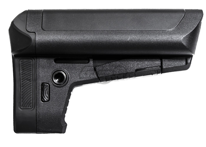 The KRYTAC brand name is derived from the legendary sea creature, The Kraken. The Kraken was feared, and revered, for it's power and dominance in the sea. No other creature could match The Kraken in strength and speed. The spirit of The Kraken lives on in KRYTAC. The KRYTAC Adjustable Battery Stock is made of a durable, high quality polymer and has more user friendly features than a standard stock. The body of the stock features a small window so the user can see their preferred stock setting when used in conjunction with the KRYTAC Buffer Tube that has position marking on the top. The butt plate is rubberized and textured to provide a solid grip for the shooter when firing. There are 2 QD sling swivel points on the stock, one on each side. On the, adjustment lever utilizes two fins near the fulcrum which makes removing and reattaching the stock to the buffer tube a simple operation. Finally, the battery compartment is designed to fit the nunchuck style battery in the tubes, a stick type battery in the buffer tube, and small LiPo brick battery in the butt plate space. The KRYTAC adjustable battery stock come standard on the KRYTAC Trident series AEGs but it is also a worthwhile upgrade for other AEG platforms.Specifications: