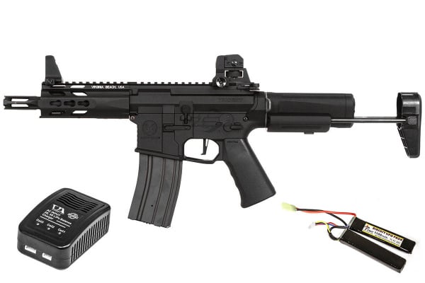 As a full metal airsoft AEG, each MK2 PDW has the durability of the real thing and a realistic weight that adds to the MilSim experience. The MK2 aluminum receivers feature a modern design style with a stamped KRYTAC logo and include an integrated trigger guard. An originally designed DEFIANCE pistol grip enhances the rifle's comfort. Additional features include an ambidextrous fire selector and a locking bolt that provides easy access to the KRYTAC rotary hop-up system. The KRYTAC rotary hop-up has 15 adjustment settings and a numbered adjustment wheel for a quick reference point to determine how much hop is needed. The futuristic KRYTAC sliding stock is adjustable to two positions and is supported by the enhanced KRYTAC buffer tube to allow space for a wider range of batteries. The KRYTAC PDW utilizes AR/M4 style magazines and sports similar controls for those familiar with the platform so there will be less of a learning curve. In addition to looking futuristic and functional, the PDW is also a fantastic performer thanks to its gearbox. The Trident MK2 PDW features a reinforced 8mm ball bearing gearbox with integrated MOSFET to regulate electronic signals and to protect the trigger contacts. The corners of the gearbox that surround the cylinder feature a smooth radius, as opposed to a 90-degree angle, to prevent fracture. Also, the gearbox shell features a small window on the left side where lubrication can be applied directly to the gears or piston. This window is convenient for inspecting the angle of engagement with the gearbox fully assembled. Additional gearbox features include a modular spring guide system that will allow the spring to be changed without completely disassembling the gearbox. As for the rest of the internals, the KRYTAC Trident piston is made of a durable, lightweight, polymer and features four metal teeth with the 2nd to last tooth absent. The Cylinder head is padded with an enlarged rubber bumper to optimize the angle of engagement and to absorb energy from the impact of the piston assembly. The material for the gears have been specially formulated to be very strong, Rockwell test figures on the KRYTAC gears are much higher than industry norms. Turning all of the drive train components is the KRYTAC high-torque motor capable of 30,000 revolutions per minute unloaded. The Trident MK2 PDW provides a fresh look to a familiar AR design with features designed to enhance performance and maximize user-friendliness. The MK2 PDW is the perfect close-quarters machine. With its high cycle rate on an 11.1V battery and small compact size, it excels in CQB. Each MK2 PDW AEG package from Airsoft GI comes with a high-capacity magazine, iron sights and an ambidextrous flash hider with a choice of three popular rifle colors.Specifications: