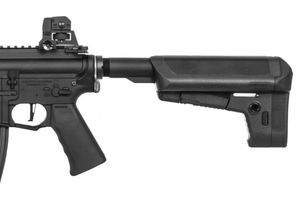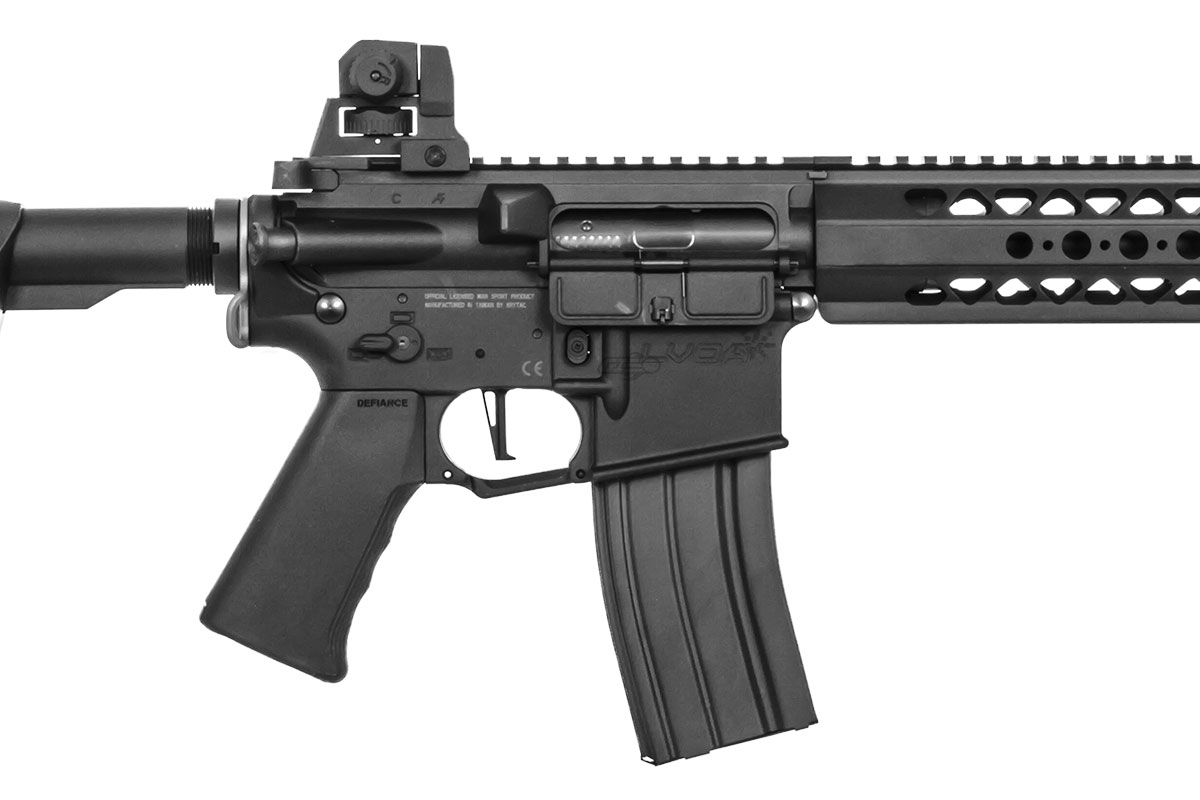 The KRYTAC brand name is derived from the legendary sea creature The Kraken. The Kraken was feared, and revered, for its power and dominance in the sea. No other creature could match The Kraken in strength and speed. The spirit of The Kraken lives on in KRYTAC. The KRYTAC LVOA-S, officially licensed by War Sport Industries LLC, is the pinnacle in M4 rifle design. It has a shorter barrel and stock than the LVOA-C, making it the better choice for close-quarters engagements. The aluminum alloy receivers feature authentic War Sport Industries and LVOA markings. This design choice gives it incredible strength and an authentic feel. The unique hand guard provides the user with tactical flexibility and numerous customization options. It merges into the DEFIANCE TR113 rail system for your accessories. The War Sport Top Hat flash hider completes the authentic look and sits flush with the end of the rail. Additional features include the KRYTAC Trident pistol grip and KRYTAC battery stock, which can be collapsed or expanded to five different positions. The fire selector is ambidextrous and the locking bolt plate provides easy access to the KRYTAC rotary hop-up. KRYTAC is the only company that is officially licensed by War Sport Industries LLC to produce the LVOA AEG, and the C model is faithfully designed to be the ultimate field rifle. The internals may be even more impressive than the exterior. The KRYTAC LVOA-S Licensed AEG features a reinforced 8mm ball bearing gearbox with integrated MOSFET to regulate electronic signals and to protect the trigger contacts. The corners of the gearbox that surround the cylinder feature a smooth radius, as opposed to a 90-degree angle, to prevent fracture. Also, the gearbox shell features a small window on the left side where lubrication can be applied directly to the gears or piston, this window is also convenient for inspecting the angle of engagement with the gearbox fully assembled. Additional gearbox features include a modular spring guide system that will allow the spring to be changed for lower CQB muzzle velocity without completely disassembling the gearbox. The KRYTAC piston is made of a durable, lightweight polymer and features four metal teeth with the 2nd to last tooth absent. The Cylinder head is padded with an enlarged rubber bumper to optimize the angle of engagement and to absorb energy from the impact of the piston assembly. The material for the gears has been specially formulated to be very strong, as Rockwell test figures on the KRYTAC gears are much higher than industry norms. Turning all of the drive train components is the KRYTAC high-torque motor capable of 30,000 revolutions per minute unloaded. The War Sport LVOA-S (Black) is a unique rifle, exactly identical to the LVOA-C but a few inches shorter. The LVOA-S makes a great medium-to-close quarters rifle but can easily hit long-range shots just as well. It comes with a high-capacity magazine and iron sights that can be removed in favor of your favorite optics.Specifications: