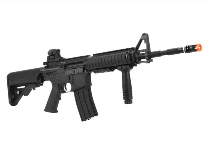 The LCT RAS M4 EBB rifle features all of the styling of an M4 including a two piece RIS rail, retractable crane stock, and triangle front sight, along with a classic A2 pistol grip. Internally, this gun features LCT's rock solid build in a V2 gearbox, capable of sustained semi-auto and fully automatic fire with a durable piston and gear set. The LCT Hopup unit gives great range in addition to the punch the LCT M4 already packs. For accessories, this gun begs for a vertical foregrip or barrel mounted M203. Either of these options, when combined with a cantilever red dot, makes for an excellent authentic military style M4 replica. The electric blowback features a moving slight with every shot, which is an excellent choice for any player looking for some added realism. For one of the most realistic feeling AEG rifles on the market, look no further than LCT.Specifications: