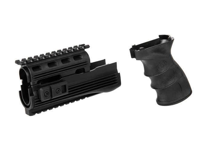 The Lancer Tactical Tactical RIS Hand Guard is designed for the Lancer Tactical AK47. This model features plenty of rail space to add accessories like a flashlight, vertical grip or anything else you may need to add onto the airsoft gun. Additionally, the package includes an ergonomic pistol grip for better handling and comfort. Overall, this is a great package to get to upgrade an airsoft AK.