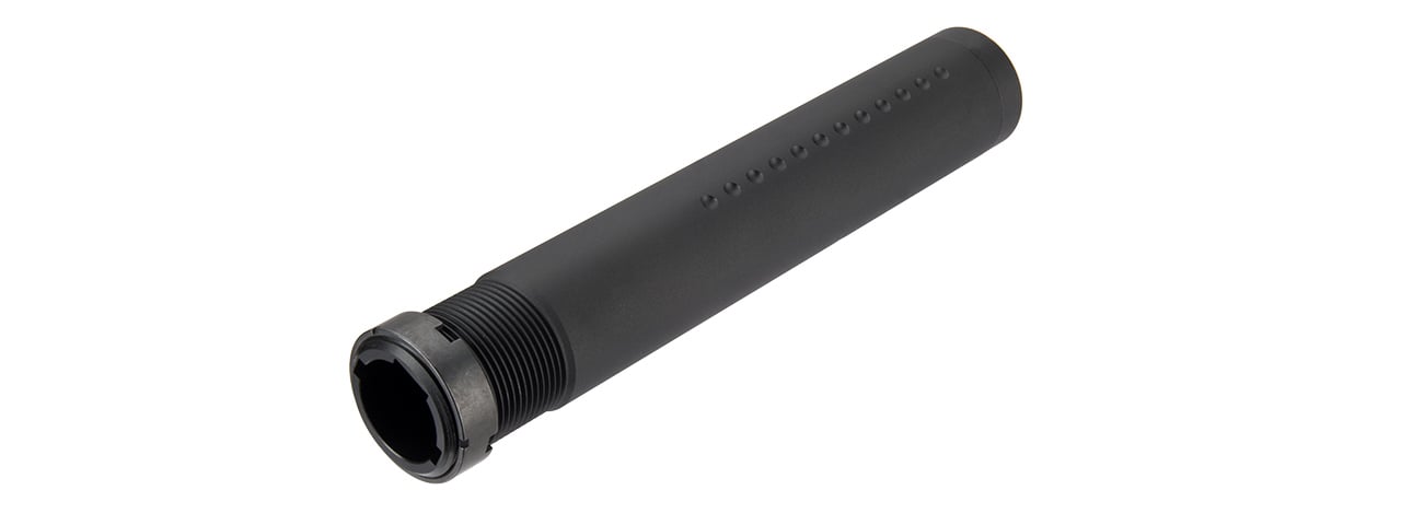 Want to change up the look of your AEG? This Blade style stock tube allows you to try a new take on the M4 by using a mostly smooth stock tube with divots for many popular AR pistol braces on the market!
