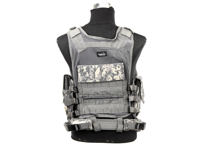 The Lancer Tactical Cross Draw Vest ( ACU ) is an okay vest for a reasonable price. The vest does not meet many standards for a good tactical vest though. It includes all pouches in the picture equaling three pistol magazine pouches, four m4/m16 STANAG pouches (could fit other mags that's all I had anything smaller it will fit of course), one shotgun shell/utility pouch, one admin/utility pouch, and one pistol holster. It also comes connected onto the tactical duty belt in the picture which has two more pistol magazine pouches. The vest itself is made up of a lightweight fairly strong fabric/netting that is low profile and decently strong. However personally I got my vest in another U.S. army camo that is a darker digital style not that of the ACU vest I ordered, I think that is AirsoftGI's fault maybe. Besides that the vest was alright it has lasted pretty well, but the overuse of Velcro kills all secrecy if reloading near enemies, and the vest when loaded tends to bring weight off the shoulders and instead hangs it all onto the chest which is annoying when running due that you get smacked by the weighted front. The vest also is adjustable, but I found that to be limited, and due to my small size I couldn't tolerate it any longer. I would recommend that one simply goes twenty more dollars into this and gets a zombie tactical vest as this vest is simply not good enough for everything a vest should be. For newer players that just want to have fun I say go right ahead.