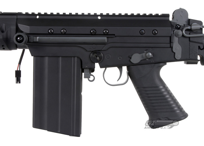 This airsoft gun uses the Lancer Tactical FAL 550 rd. AEG High Capacity Magazines. 2799 days ago 0