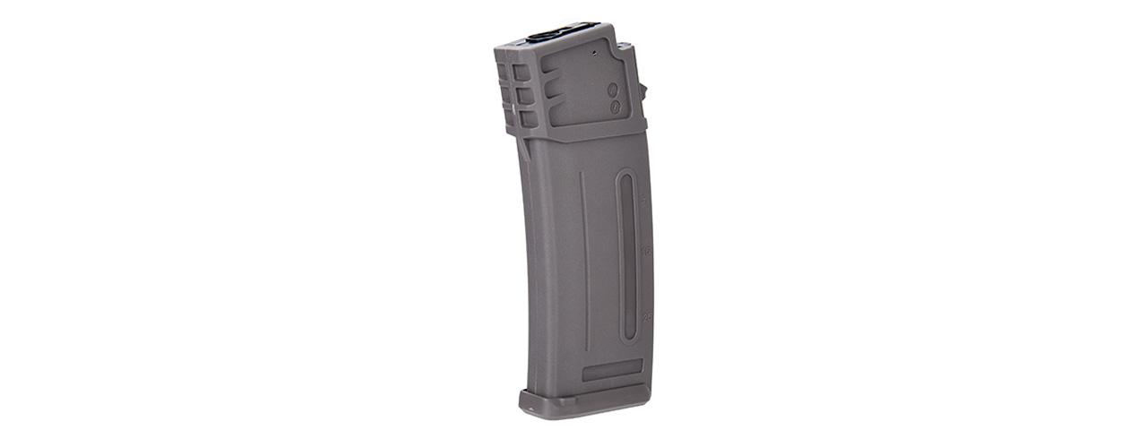 The Lancer Tactical G36 AEG High Cap Flash Mag features a pull wire hidden by the bottom slide cover. A traditional high capacity magazine must be winded with wheel on the bottom on the magazine to feed the BBs into the loading tube. This flash magazine uses a string that winds the magazine when pulled a few times. This system makes reloading the same the magazine much quicker and easier. Additionally, a wheel on the bottom of the magazine which can take away from the realistic appearance.