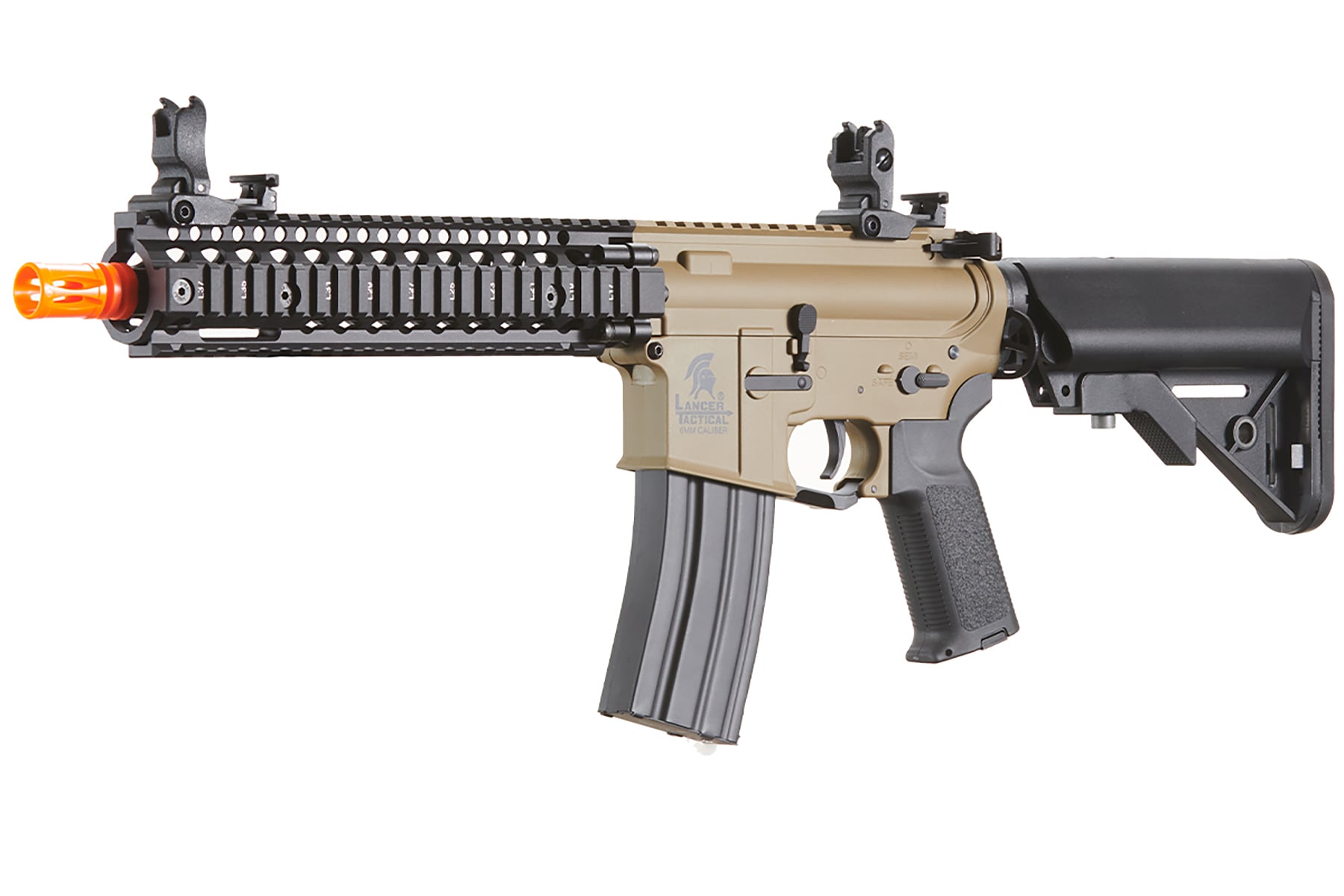 Lancer Tactical has added the Raider LT-31 to its lineup and its exactly what you need! As you know, the Lancer Tactical Gen 2 Series features an extra durable polymer receiver set for a lightweight feeling yet solid base. You get a classic SopMod Adjustable crane stock for a very classic look with all the functionality you need. The Raider's rail system gives you plenty of space for all of the accessories you want to increase your performance on the field! The rail also provides a monolithic upper rail for your desired optics. Hit your targets with ease with the precision shots with the 6.03mm tight bore inner barrel preinstalled into the rifle. Change your FPS with ease, the quick change spring system allows you set up the velocity you need to play at different field limits. The true quick change spring system enables adjustment from CQB to outdoor and back through unlocking the mechanism secured inside the buffer tube.