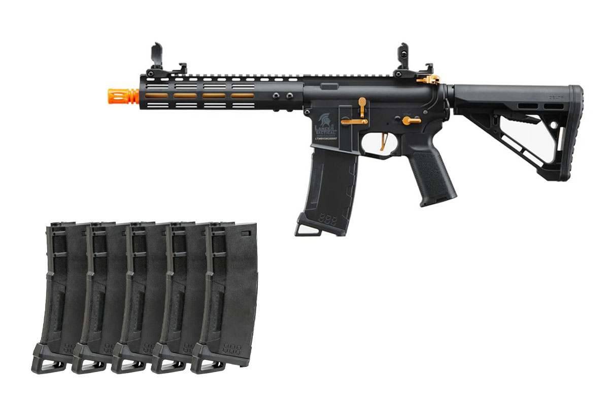Lancer Tactical Gen 3 Archon 9" M-LOK M4 Airsoft Rifle w/ Delta Stock (Black & Gold)