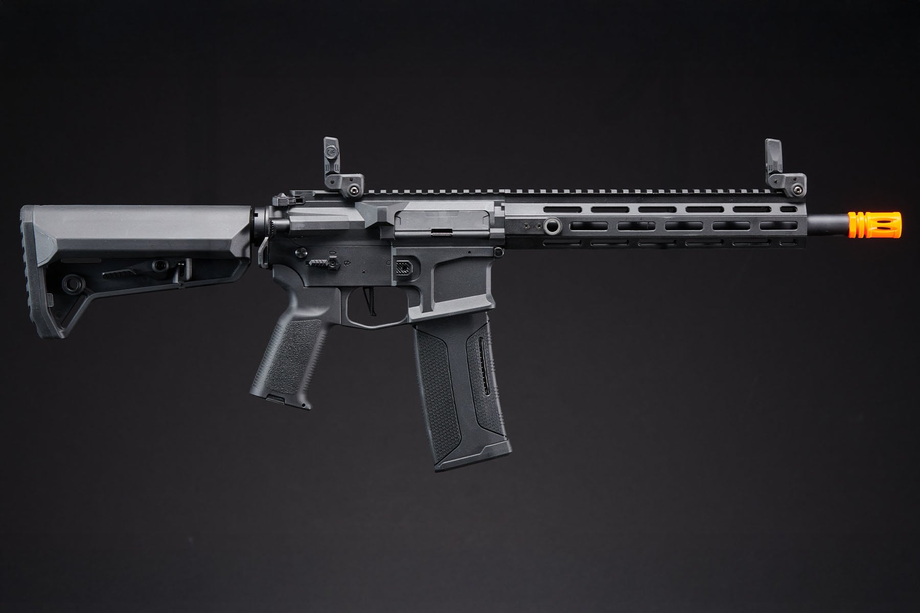 NSR receiver and NSR stock, a free-float 10" M-LOK handguard, full-length 20 mm Picatinny rail, and upgraded flip-up sights give you easy setup, secure handling, and tons of accessory options.
