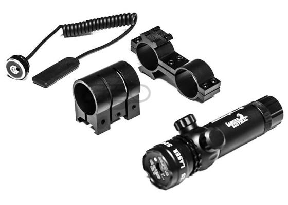 External constructed out of a light weight but strong metal, the Lancer Tactical green laser is a definite must on the battle field. Compared to red lasers that blend in with the light during the day, some green lasers are much more definitive and can easily been seen both day and night. The benefits of having a laser, if adjusted properly, is for the user to quickly acquire and engage targets without looking down their sights. Green lasers can also be used to point out buildings or nearby objectives. Included with this laser are two different mounting attachments as well as a pressure switch to easily activate the laser.