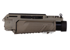 [P06C01][10123 / CA-01T]The Lancer Tactical Grenade Launcher is the affordable 40mm launcher you've been waiting for. The build quality on this launcher is very high. The major advantage to this style of grenade launcher, is that with the trigger conveniently located behind the magazine, the user has the option of one-hand operation of both the primary gun and the launcher. The tactical grenade launcher is much more advanced than the M203 launchers of old with it's numerous advantageous features such as the barrel and chamber that swivel from left to right for quick reloading. The tactical grenade launcher attaches to the MK16's rails with quick detach lever mounts, and it offers two forward sling points (one on each side). Lancer Tactical offers this amazing launcher for an unprecedentedly affordable price and they even give you the option to use it on your MK16 or even certain M4 models with the special trigger assembly, and the ability to be mounted on the SCAR Heavy or Light model.