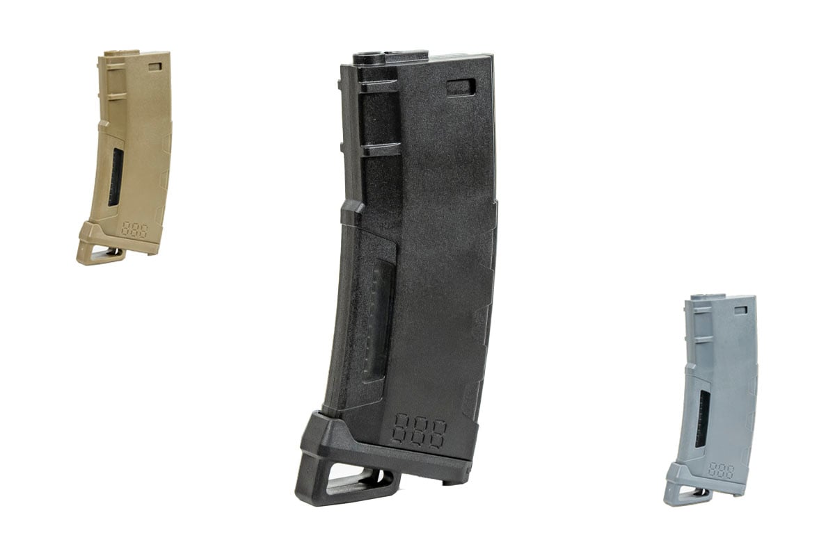 These magazines are made with a high strength polymer. Based of of the M4 Platform, they fit and feed perfectly in most M4 AEGs. Holding 130 rounds of 6mm Airsoft BBs, Lancer Tactical have designed this magazine with a balance of ammo capacity and being able to feed at very high rates of fire. The Enhanced Magazine Base Plate provides a bumper when dropping the magazines on hard surfaces and a stable platform when laying prone or shooting from a flat surface. The BB Window allows you view of the BB track and to see a rough estimate of how many BBs you have remaining. On the left and right sides, at the bottom of the magazine include engraved "8" pattern shape to fill in with colored paint to help identify your magazines. These magazines give order Mid Cap Magazines a run for your money!