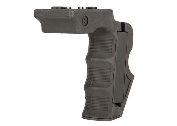 This keymod compatible fore grip is an excellent lightweight option for players looking to add some extra controllability to their airsoft gun. It features a sealed storage space for keeping extra scope batteries or other small items. The ergonomic contours of this grip also make it an incredibly comfortable grip to use for any gun featuring a keymod hand guard.