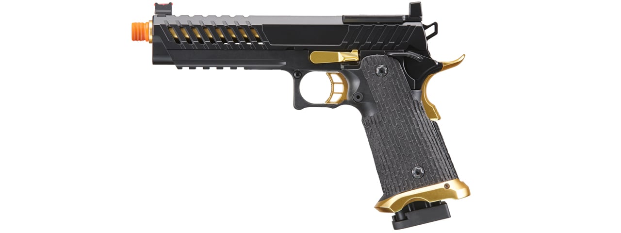 Lancer Tactical Knightshade Hi-Capa Gas Blowback Airsoft Pistol w/ Red Dot Mount (Black/Gold)