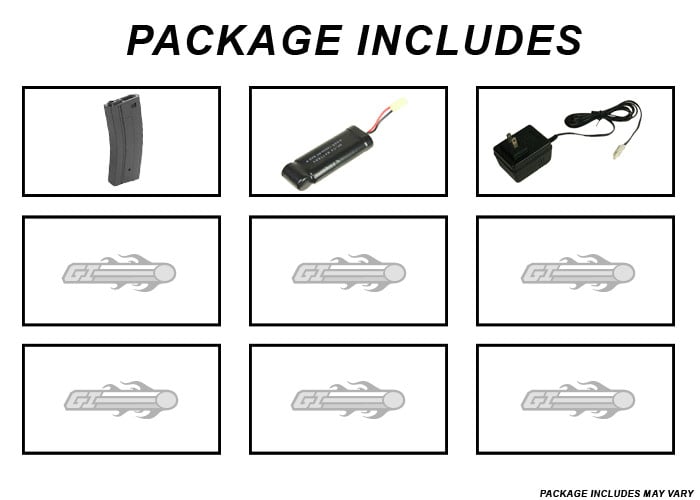 Package Includes: Gun, Magazine, Battery, Charger, Vertical Grip