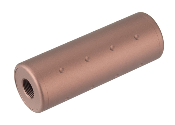 What are the dimensions of this mock suppressor and is the color more of a dark tan or pale copper as it looks in the picture?