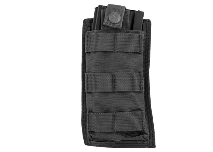 This MOLLE Open Top Single M4 Mag Pouch fits One (1) M4 "STANAG" style magazine. This pouch attaches to plate carriers, vests and battle belts with compatible MOLLE webbing. The open top of this magazine pouch gives the user easy access to their magazines for speed reloads. The pouch features a bungee cord strap to hold the magazines secure while moving quickly or traversing obstacles.