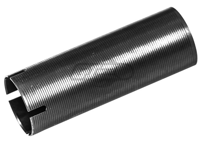 The Lonex M4/SR16 Cylinder is built using high density and heat treated steel to withstand the constant friction damage caused by the piston head. A grooved design is added to the exterior of the cylinder, to effectively dissipate the heat caused by friction between piston and cylinder, and the interior of the cylinder is polished to reduce friction. This is an easy upgrade to most airsoft replicas for those seeking maximum air compression and efficiency. This is a 9/10 volume cylinder with small cuts in one end to vent a small amount of air before starting compression, which provides optimal air capacity for barrels that measure 400mm in length or greater