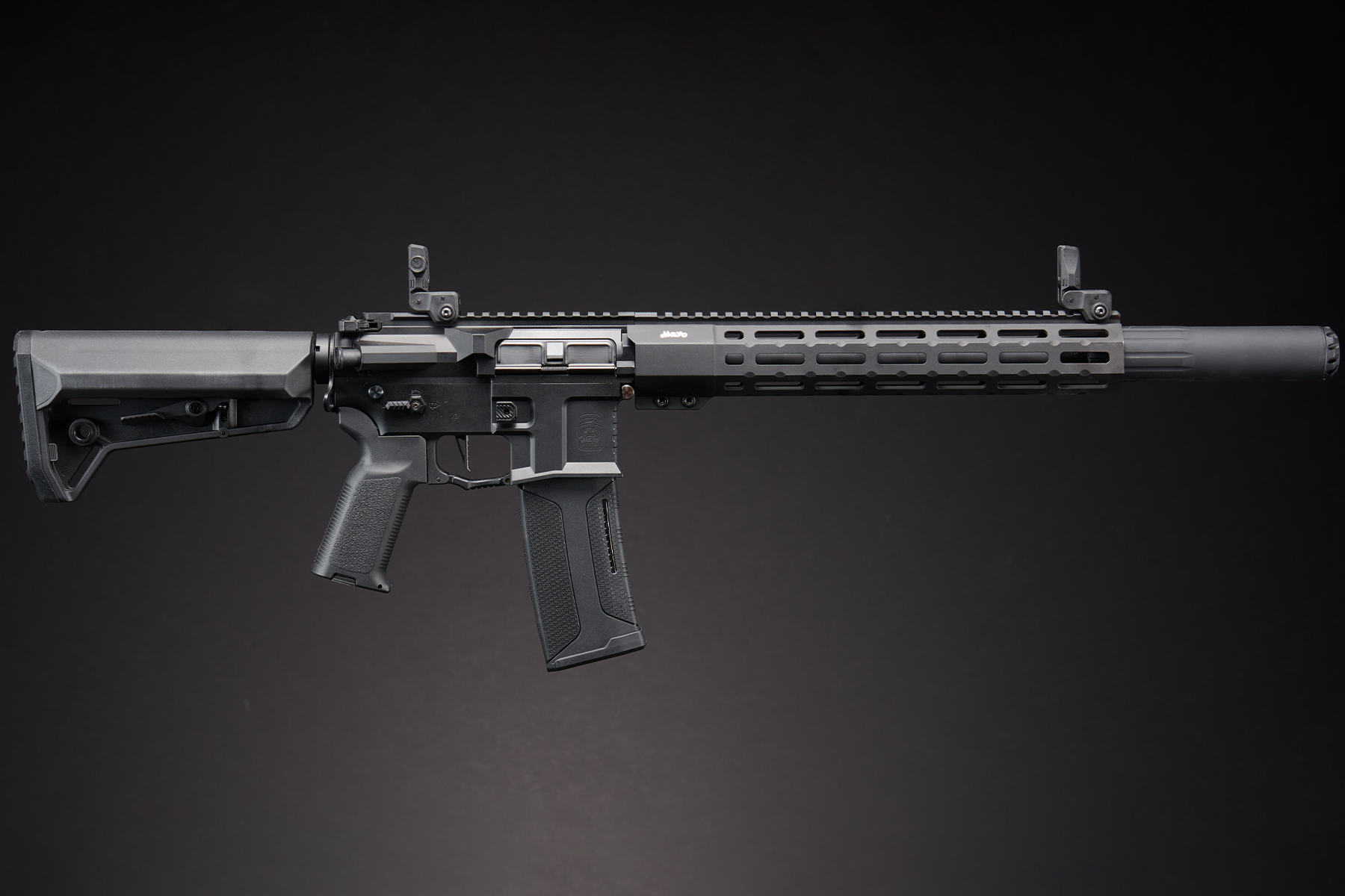 Pre-built Honey Badger carbine is basically what this is. Good range, accuracy is there, and the trigger response is solid with a tuneable trigger already equipped. The receiver controls are ambi too so good for lefties even.
