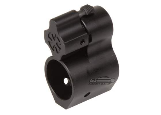The Madbull Noveske Low Profile Switch Gas Block is not made to fit inside rail interface systems. The front of the gas block is to remain accessible so the user can adjust the amount of pressure that's routed backwards to cycle the bolt. Obviously this feature is only made to imitate the real product and serves no function for airsoft but it is a unique feature that displays Madbull's attention to detail in making an accurate replica. Similar Gas blocks have become popular and can be seen on numerous precision and civilian style AR-15 rifles, its another great way to customize your AEG to make it your own. This gas block features a small but visible Noveske logo on the front, it adds a small bit of flare for those with very good attention to detail.