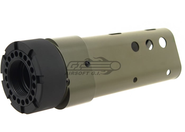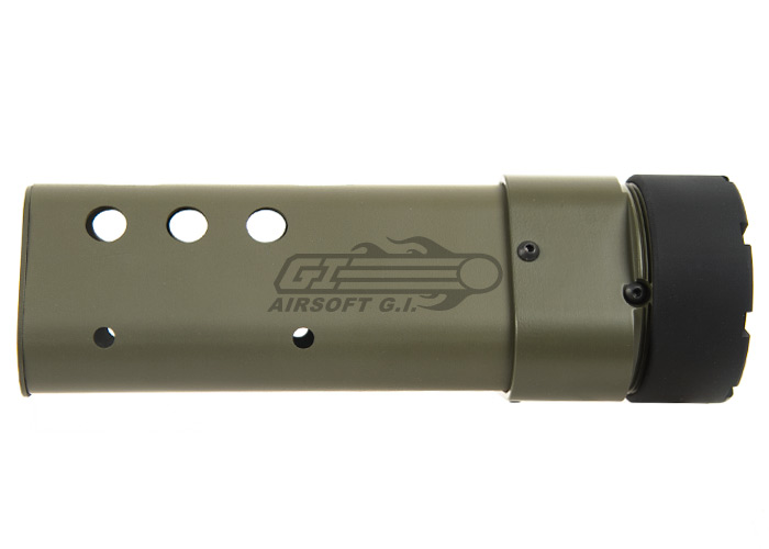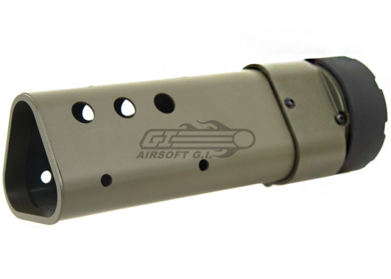Seeing the functionality of the PRI Handuards, MadBull has done an excellent job in recreating the PRI Delta Handguard for Airsoft use. The polymer frame is lightweight over a traditional metal rail interface system which decreases the amount of fatigue overall. The pre-drilled holes and slots offer the user a wide variety when mounting rail panels and accessories. The steel barrel lug threads on securely to most airsoft m4 bodies.