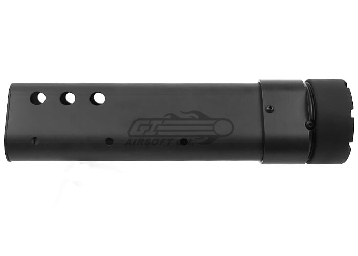 Seeing the functionality of the PRI Handuards, MadBull has done an excellent job in recreating the PRI Delta Handguard for Airsoft use. The polymer frame is lightweight over a traditional metal rail interface system which decreases the amount of fatigue overall. The pre-drilled holes and slots offer the user a wide variety when mounting rail panels and accessories. The steel barrel lug threads on securely to most airsoft m4 bodies.