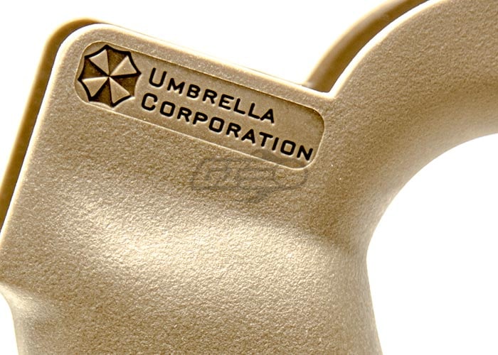 The Licensed Umbrella Corporation pistol grip by Madbull Airsoft features a more vertical angle that will allow the shooter to have better control of their rifle without putting more strain on the wrist. Due to the angle of the grip and smaller size this pistol grip is designed to emulate a real firearm grip. This pistol grip is designed to be used with a long type motor. The polymer construction is very strong and lightweight,and fits most M4 or M16 variant airsoft gun on the market.