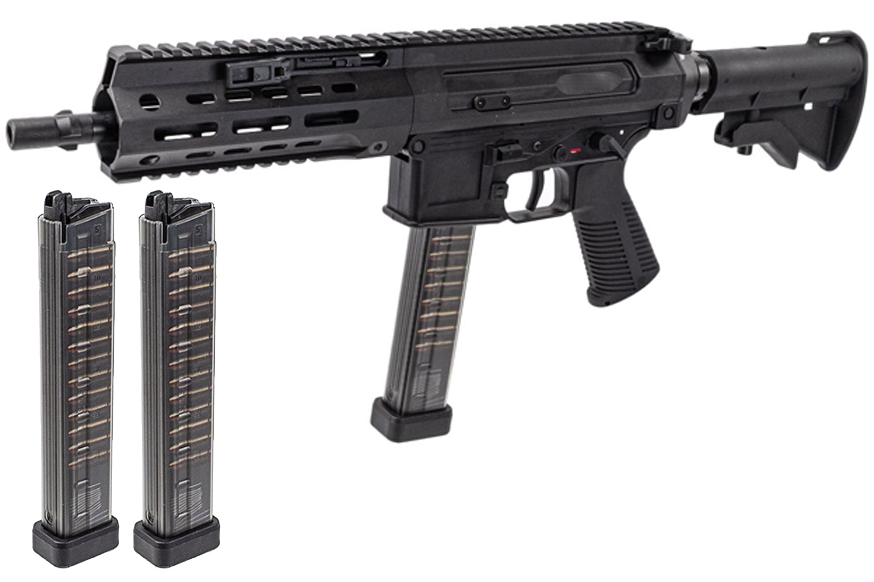 With a magazine capacity of 45 rounds and a lightweight yet sturdy design, the 5PC ensures you’re always ready for action. Weighing 1960 g with the magazine, it provides stability without compromising mobility. Its compact overall length of 410 mm, extendable to 590 mm, offers the versatility needed for both close-quarters and mid-range engagements.