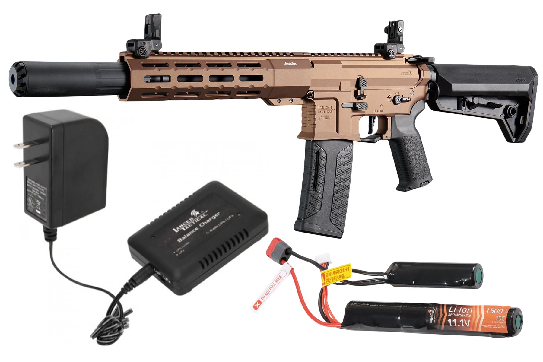- Package Includes: Gun, Magazine, Flip-Up Sights, Metal QD Mock Suppressor, Suppressor Ready Flash Hider, 11.1V LiPo Battery, Balance LiPo Charger