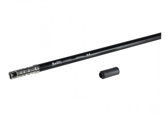 The Modfiy Hybrid Max 6.01mm Precision Inner Barrel is an upgrade barrel for AEG airsoft replicas. The barrel is made of an aircraft grade aluminum alloy that makes it extremely lightweight, and features a 6.01mm inner diameter bore for improved velocity and accuracy, and has an o-ring for stabilization that helps to reduce barrel vibration and helps ensure that shots are as accurate at possible.