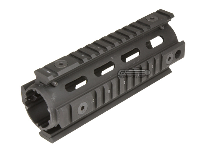 The NC Star Quad Rail Handguard for M4 is a sturdy 2 Piece RIS Handguard that clamps firmly onto real gun style delta rings. This piece is not for TM/ICS/SRC/ECHO 1 style M4s; if you wish to use this RIS on any of the aforementioned guns you will need to purchase a separate delta ring.
