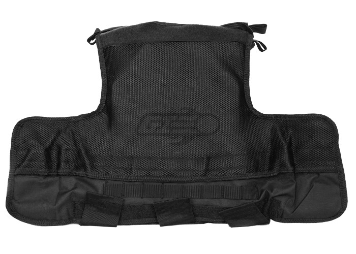 The Quick Release Heavy Duty Plate Carrier is designed to fit larger front & back armor plates up to 11" X 14" in size. MOLLE webbing for the ultimate in custom configuration. Quick Release strap will allow the Plate Carrier to separate into 4 separate panel pieces in case of an emergency that require the quick removal of the plate carrier from the wearer. Adjustable for length cummerbund with MOLLE webbing, cummerbund can be extended out to 51"L. Hook and Loop fasteners on the ends of the cummerbund to secure with the front panel hook and loop fasteners, for a secure fit. Adjustable for length Shoulder straps with large heavy duty quick connect buckles and with hook and loop fasteners. Includes two padded shoulder covers with MOLLE webbing, hook and loop fasteners, and loops for communications cabling routing. Top three MOLLE webbing rows on the front and back panels have loop fasteners for attaching (hook) Unit, ID, and name tapes to the front and rear panels. Heavy Duty drag handle on the top of the rear panel. 10"X 6" front pocket with hook and loop enclosure. Breathable mesh inner panels with separate internal pockets for soft body armor panels and hard plate armor. Made with tough and durable PVC material that is water and chemical resistant. Double and re-enforcement cross stitching in critical areas.