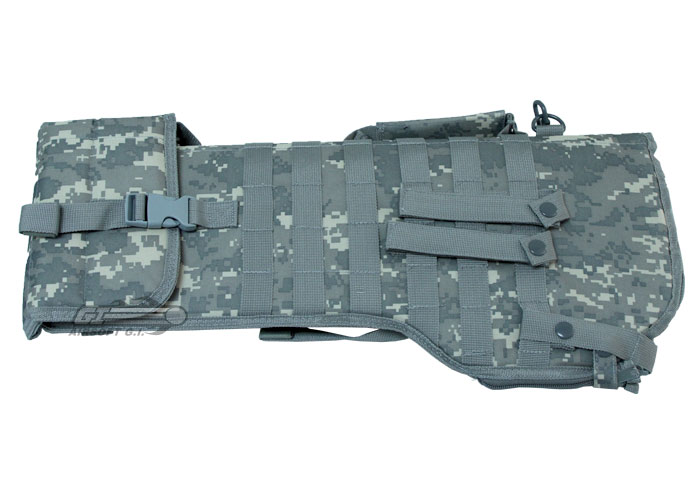 The NC Star Tactical Rifle Scabbard is designed to hold one carbine length rifle and can be carried via a shoulder strap or attached with MOLLE webbing. This scabbard features 4 rows of MOLLE webbing on both sides with detachable PALS straps for ambidextrous use. The included retention strap is removable and features quick release buckles as well as heavy padding to ensure operator comfort. To accommodate rifles of different lengths, the NC Star Tactical Rifle Scabbard is able to expand to three positions to ensure a proper fit.