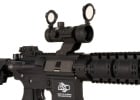The NC STAR Tactical Cantilever Red / Green Dot Sight is a great optic that works perfectly in a CQB scenario. This optic comes with a Cantilever mount which puts the optic up higher then the rail to aid the user in using the optic when wearing a full face mask. Easy to use, see through lens covers help keep your lenses clean and scratch free when not in use. This optic is illuminated which helps the user easily find the reticle in dark or low light conditions. The NC STAR Tactical Cantilever sight is a great buy for somebody looking for a high quality but affordable optic for their AEG.
