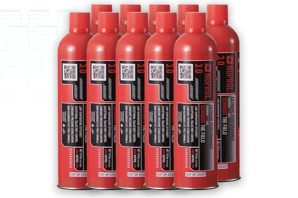 Green Gas is the required fuel source for all airsoft gas pistols, gas rifles, and gas sub machine guns. It serves two purposes; to act as a propellant for the BB, and to fuel the blow back system. This can of Nuprol 3.0 High Performance Gas or colloquially known as "Red Gas" is essentially Green Gas' Giga-Chad cousin! The 3.0 Gas was intended for use in slightly colder environments, but when used in warmer climates, the user can expect a harder kick and bump in FPS!
