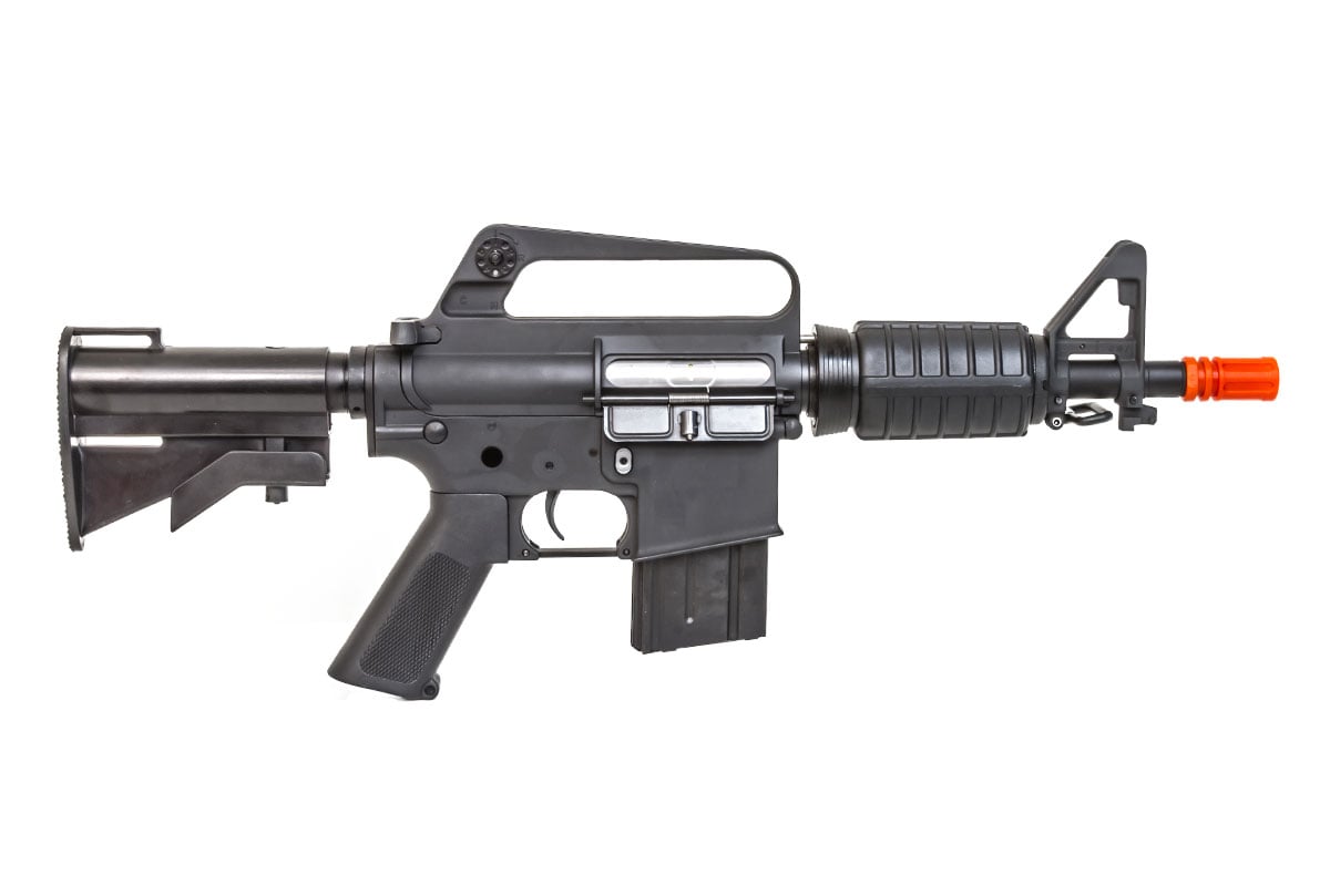 The N23 combines a very retro-vintage appearance with the latest in airsoft technology. The retro appearance starts with the vintage style "Model 607/VN" style receiver with a fixed carry handle and no forward assist. Complementing it is a uniquely shortened CAR-15 style "narrow" handguards and a custom shortened XM177 style buttstock on a custom shortened buffer tube. The end result is an ultra-compact AEG that looks vintage and "authentic" but has an almost toy-like quality due to its exaggeratedly shrunken proportions.