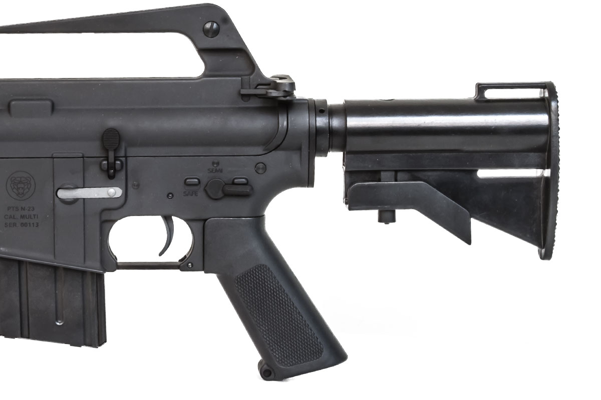 The PTS CAR-15 N23 PDW is the first model AEG rifle for our new PTS "Real-Spec" Legacy Airsoft Series. The original N23 was conceived and built by Dave Merrill, a well-known firearms expert and writer, who was inspired by an image of a truncated cutaway schematic of the AR15 that was filed in Colt's original patent.
