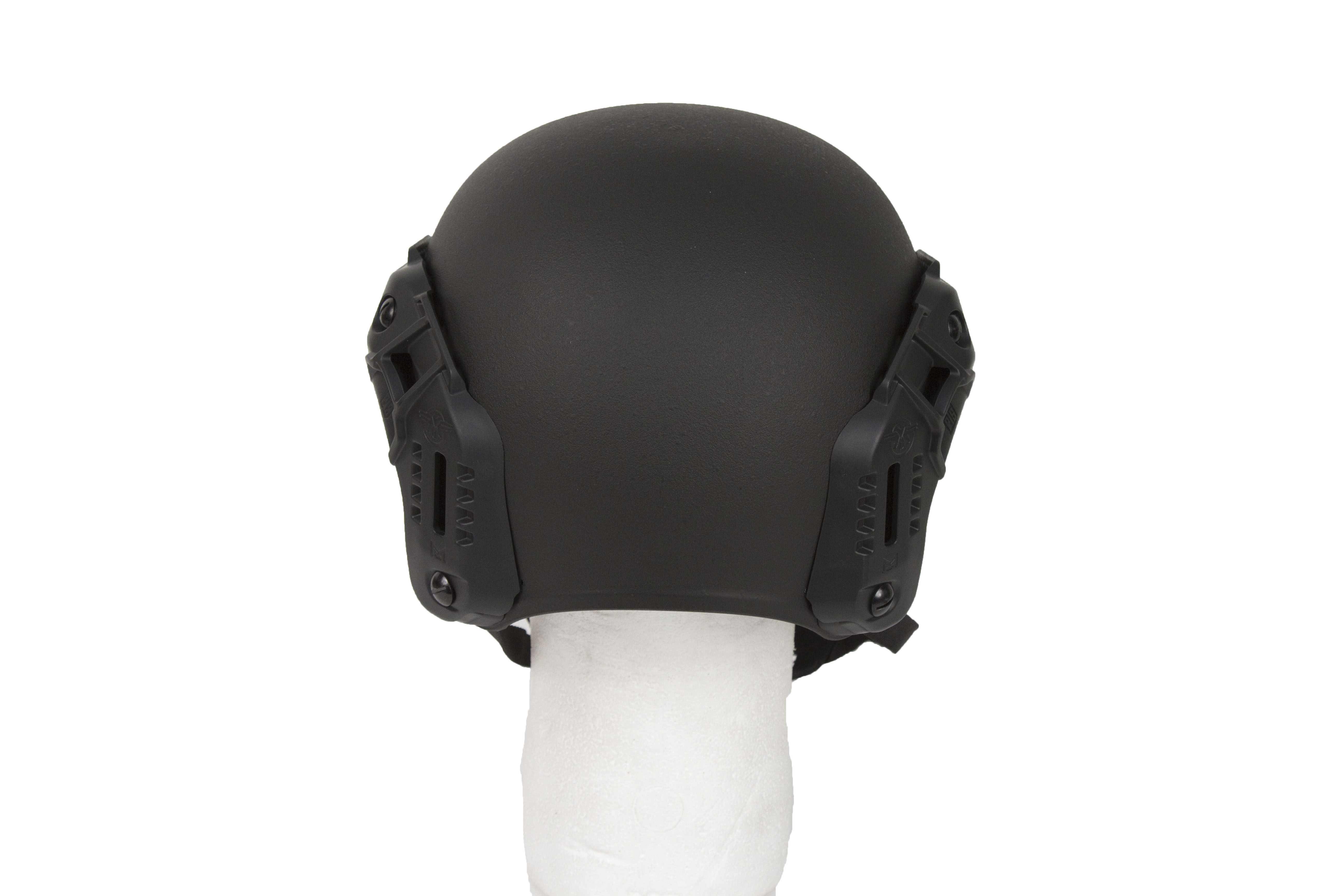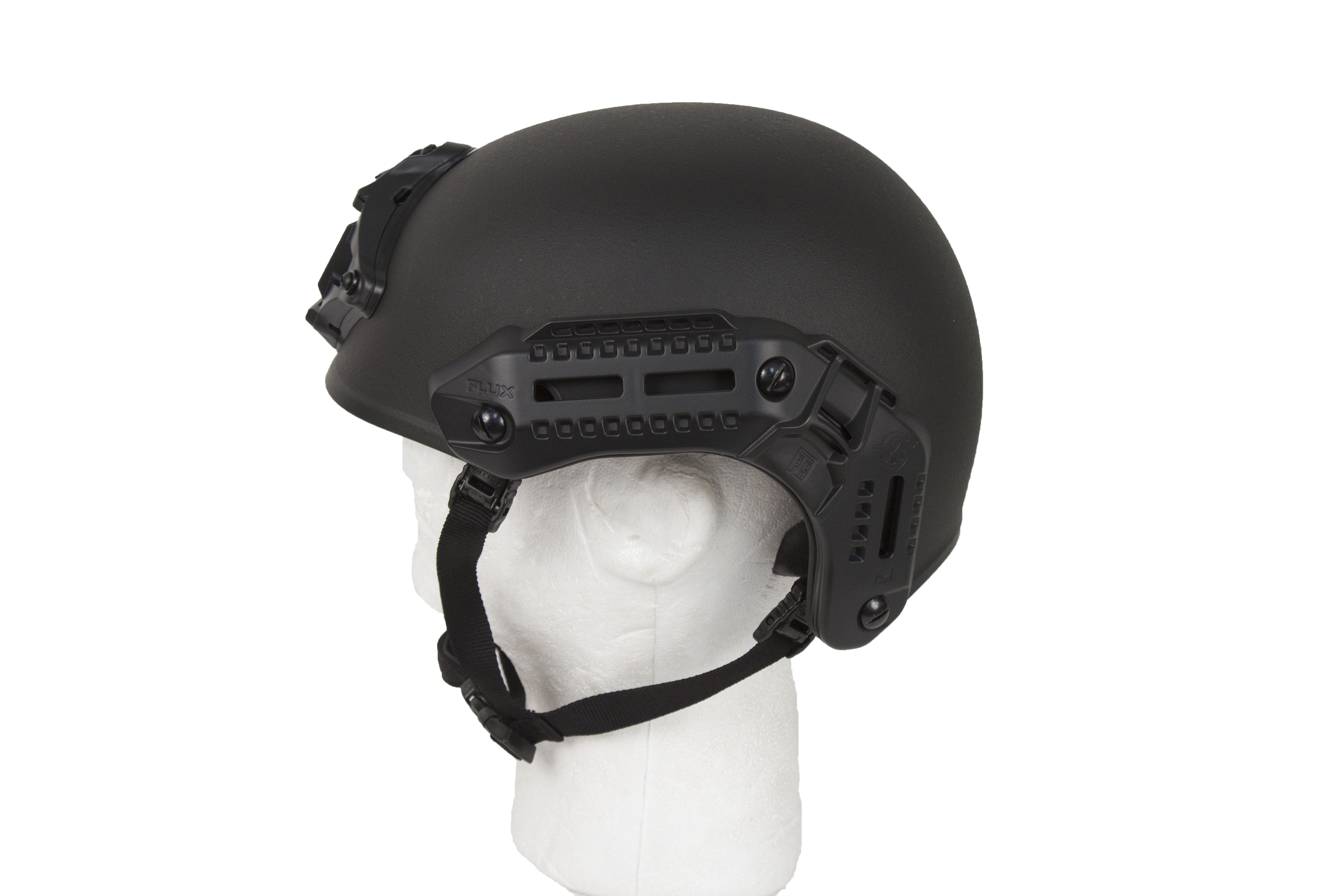 [46175 / MF001140307]The MTEK FLUX helmet is the tangible result of a multi-year design and development effort to create an advanced, modular helmet system. The word FLUX is an acronym for Future, Lightweight, Undercut, eXpandable and is derived from latin fluxus, meaning "flow". The FLUX helmet is specifically designed to follow the natural shape of your head, so it results in increased comfort and stability, even when you wind up wearing it for hours on end or with multiple accessories attached. This goes a long way to actively reduce mental and physical fatigue, especially when you don't have time for either. The edge profile of the FLUX shell is designed to be fully compatible with all of your favorite communications headsets, goggles, eyewear, and respirators. The rear profile allows for proper clearance when you're wearing a ballistic vest and does not restrict movement even when lying in the prone position. The bottom of the FLUX shell extends further downwards and recurves into center. This lowers the rear mounting position of the retention system, and allows the suspension system to further cradle your head. This significantly adds to the overall stability of the helmet, especially when wearing large NOD's or other mounted accessories.
