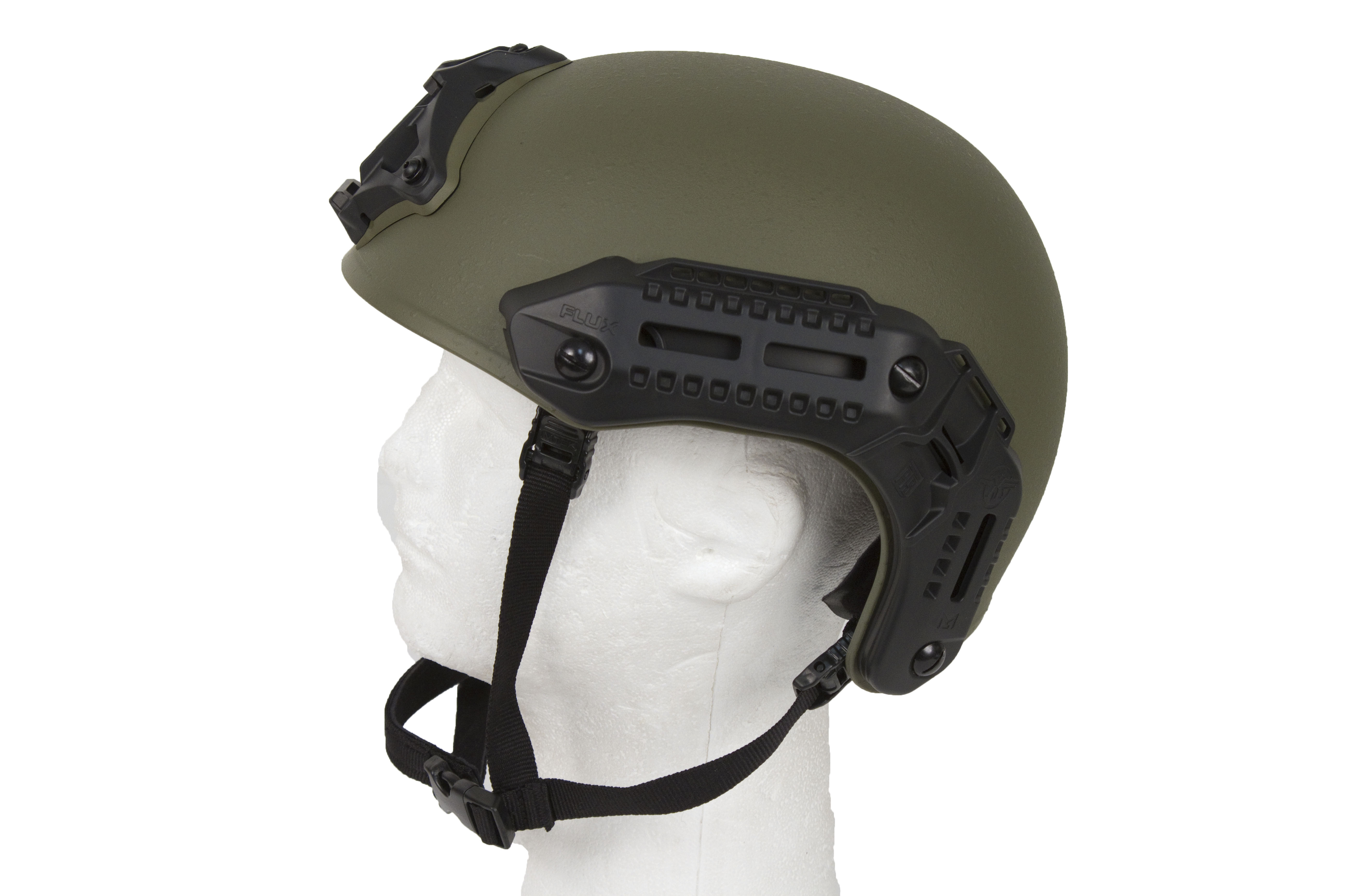 [46177 / MF001140340]The MTEK FLUX helmet is the tangible result of a multi-year design and development effort to create an advanced, modular helmet system. The word FLUX is an acronym for Future, Lightweight, Undercut, eXpandable and is derived from latin fluxus, meaning "flow". The FLUX helmet is specifically designed to follow the natural shape of your head, so it results in increased comfort and stability, even when you wind up wearing it for hours on end or with multiple accessories attached. This goes a long way to actively reduce mental and physical fatigue, especially when you don't have time for either. The edge profile of the FLUX shell is designed to be fully compatible with all of your favorite communications headsets, goggles, eyewear, and respirators. The rear profile allows for proper clearance when you're wearing a ballistic vest and does not restrict movement even when lying in the prone position. The bottom of the FLUX shell extends further downwards and recurves into center. This lowers the rear mounting position of the retention system, and allows the suspension system to further cradle your head. This significantly adds to the overall stability of the helmet, especially when wearing large NOD's or other mounted accessories.