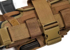 The Pantac 1000D Cordura H&K MP7 Dropleg Holster (Coyote) is another extremely high quality product from Pantac. Made from 1000 Denier Cordura, this holster attaches to a belt via a buckle closure system and a large strap wraps around the users thigh and secures with a buckle. The back of the holster is made of an anti-slip surface so the holster will not sag when being used. This holster is made specifically for the MP7 and holds it very securely. This holster can also accommodate one magazine on the side of the weapon.
