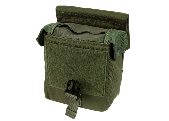 The Pantac Molle M60 100Rd Ammo Pouch can either be used as it was intended, to hold rounds for your M60 machine gun, or it can be used as a molle ammo dump pouch. This pouch has a rigid design which make i great for holding ammo while it's being fed into the gun, and equally great to keep the pouch ready to accept spent magazines while reloading. The top flap secures with Velcro but also has a buckle for added security. Underneath the top flap there are two overlapping elastic bands to keep whatever is inside the pouch inside, no matter how much it's jarred. The pouch itself has a divider inside, but it can be removed easily if the user wishes it gone. This is a great multipurpose pouch for the M60 and standard assault players alike.