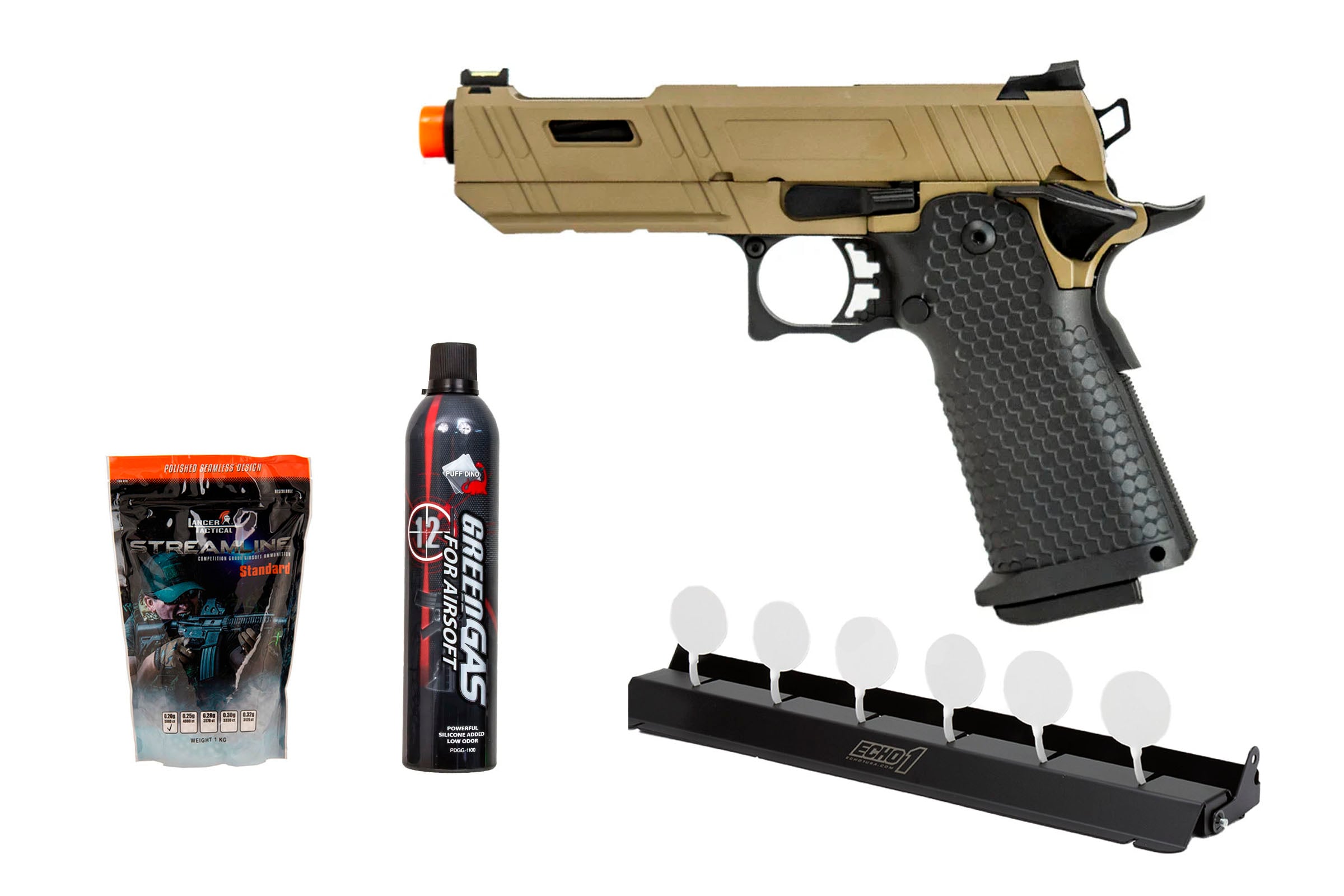 Plate Rack Challenge Package #4 Ft. JAG Arms 4.3 GMX 3T Gas Pistol (Tan)