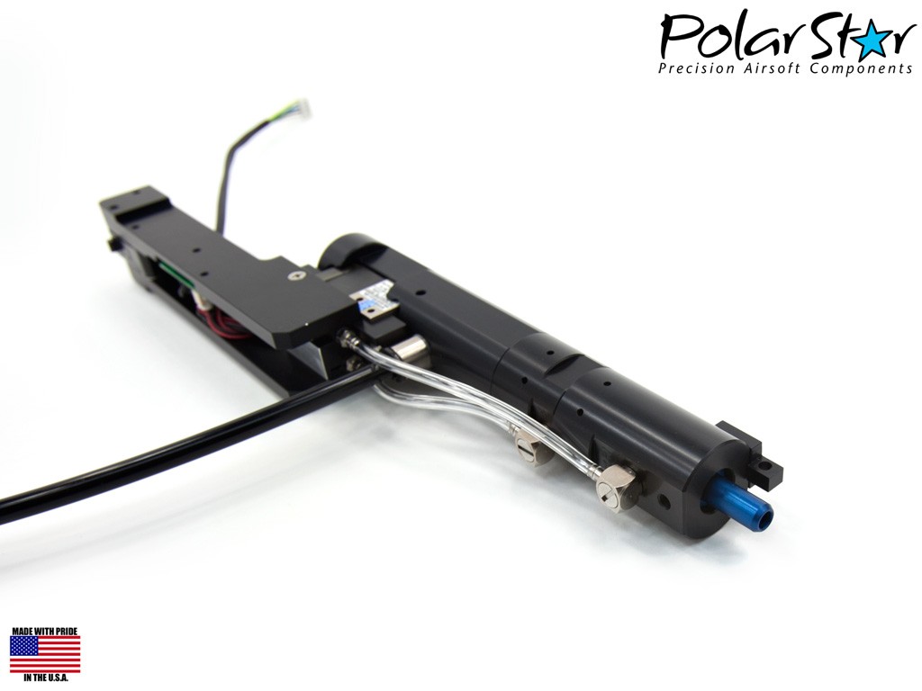 The PolarStar Fusion Engine is the latest break through innovation in the world of airsoft, and it is a true game changer. The PolarStar Fusion Engine is essentially a drop in HPA conversion kit that takes your standard AEG 240B and coverts it into a HPA gun, or as Polar Star calls it, an E-Par. The Polar Star Fusion Engine is powered by high pressure air meaning that you can say good bye to gears, pistons, motors and other troublesome parts. The Fusion Engine features very few moving parts and features a solenoid driven system that is controlled by the FCU or fire control unit. The FCU allows the user to completely control the Fusion Engine by allowing the FPS, ROF, and other detailed operations to be completely customizable. The M240B model features control over the box magazine as well to ensure that it properly feeds with the fusion engine. The nozzle of the Fusion Engine is also completely customizable which allows the user to install any of the color-coded nozzles which control the maximum fps of the engine. This engine is ready to drop into your Echo 1 or Trigger Happy M240B, all it needs is the HPA system as well as a small battery to power the FCU. PolarStar is easily one of the most innovative airsoft companies in the industry, and the Fusion Engine is a shining example of that fact. The Fusion Engine allows complete control of your gun without having to open a gearbox ever again, the Fusion Engine is a true advancement to the airsoft industry.