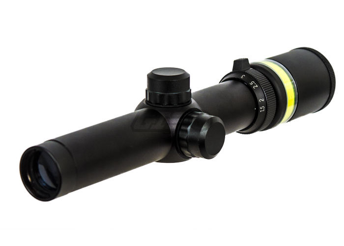 The RWA Fiber Optic Scope 1.5 - 6 x 24 is a great optic for those aspiring for a long range designated marksman role. The top and side easy to use dials allow for windage and elevation adjustments. This scope is capable of variable zoom from 1.5x to 6x. A large knob and serrations in the zoom adjustment ring make it very easy for you adjust it on the fly. The fiber optic feature of this scope uses natural light and attempts to focus it completely onto the reticle. This allows the scope to be useable even in low-light conditions. This illumination works without the need for batteries. The German Reticle keeps your field of view clear and precise. Compatible with 1" scope rings, the RWA Fiber Optic Scope is a great accessory for all long range airsoft guns and firearms.