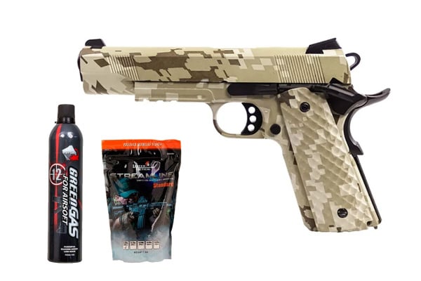 Raven Airsoft MEU 1911 GBB Airsoft Pistol Starter Package (Digi Desert)